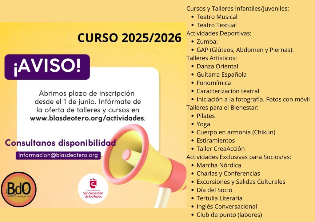 Puedes desplegar el menú de ACTIVIDADES y consultar la información. Si tienes alguna duda, llámanos o escríbenos en horario de secretaría y te explicamos lo que necesites. ¡Este curso, haz algo distinto!